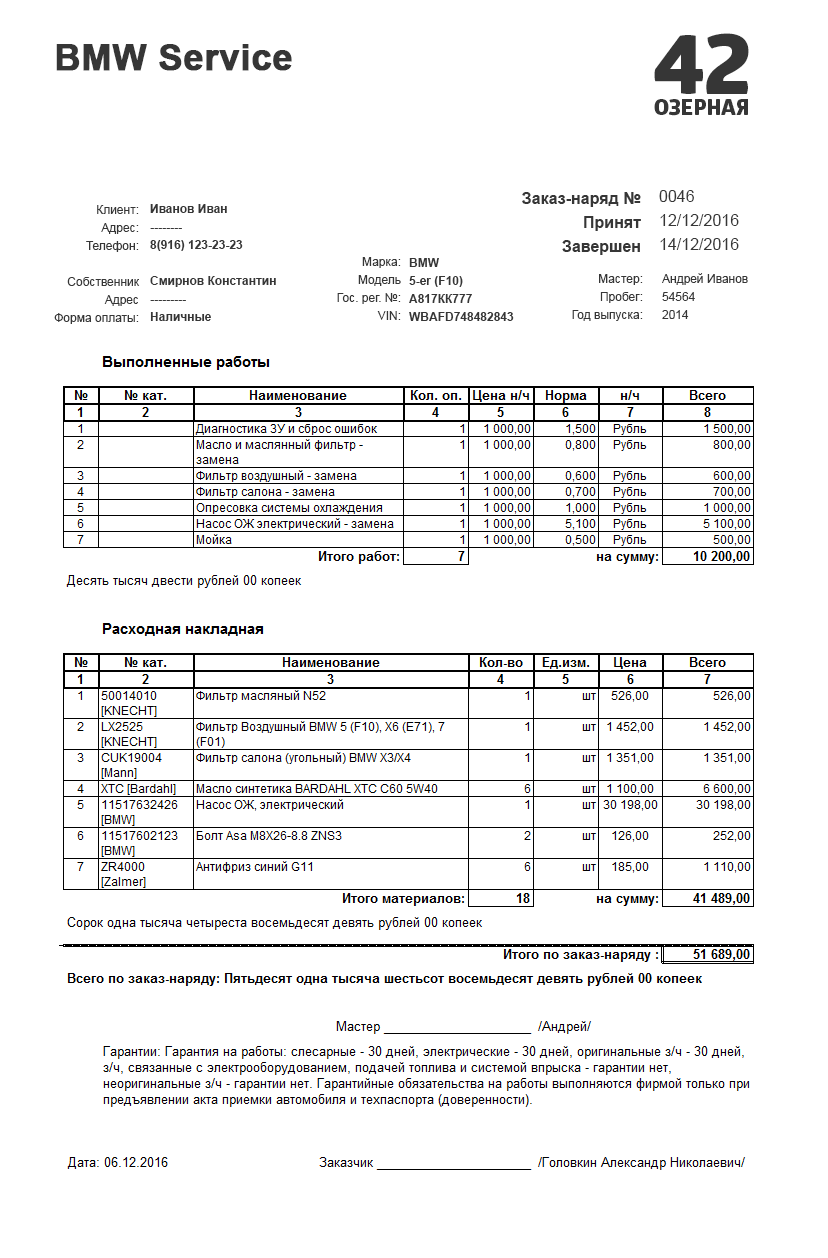 Печатная форма во вложении. Выходить должна из документа "Заказ-наряд"