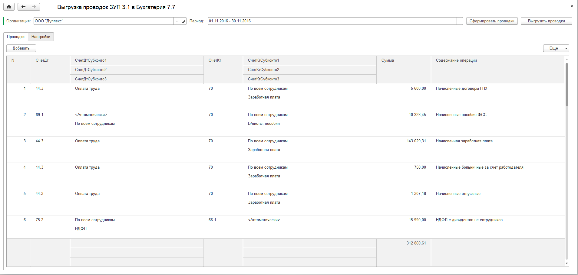 Выгрузка проводок из ЗУП 3.1 в 1С Бухгалтерия 7.7