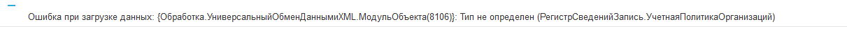 При конвертации типовой Бух 7.7 (627 рел) в БУ 8.3 ( 3.0.44.201 рел) стандартной обработкой через файл возникает ошибка - "Тип не определен(РегистрСведенийЗапись.УчетнаяПОлитикаОрганизаций).