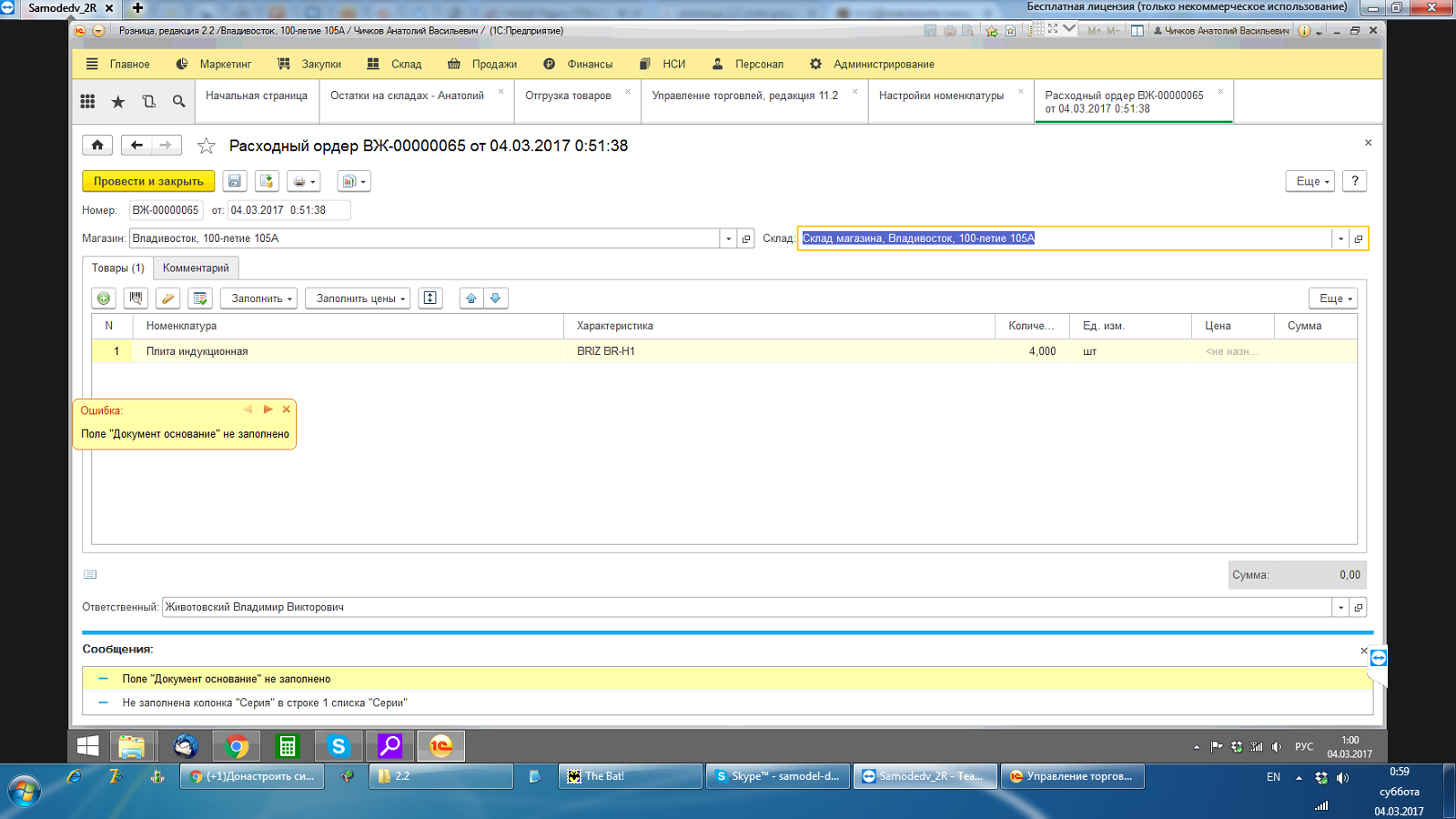 УТ 11.2, Розница 2.2, не проводятся расходные ордера