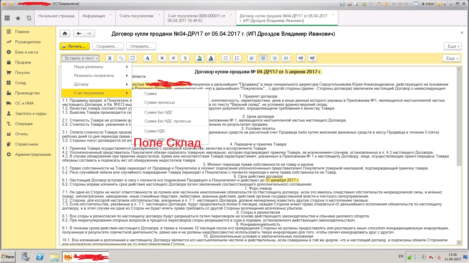 Доработка печатной формы договора в Бухгалтерии 3.0