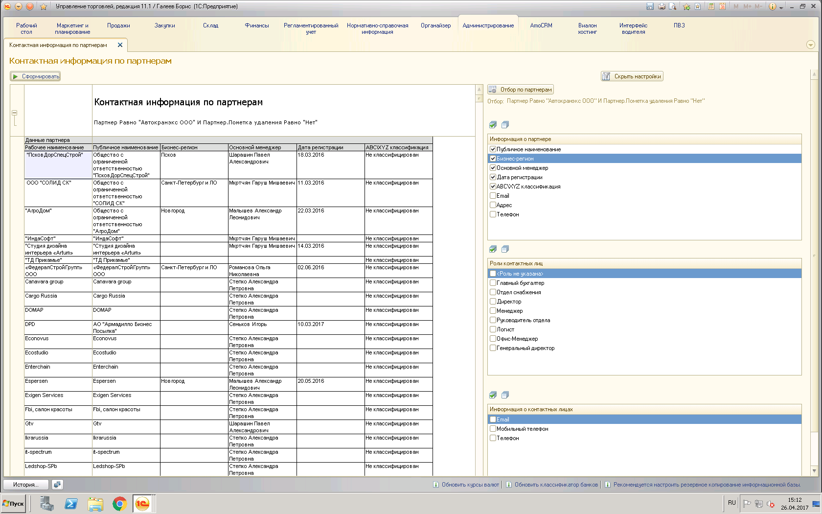 Требуется доработка отчета по контактной информации, необходимо добавить возможность вывода Информации о банковском счете контрагента (контрагент у партнера всегда один) (Р/с БИК и название банка), можно в одной колонке, если несколько банковский счетов то можно разными колонками.