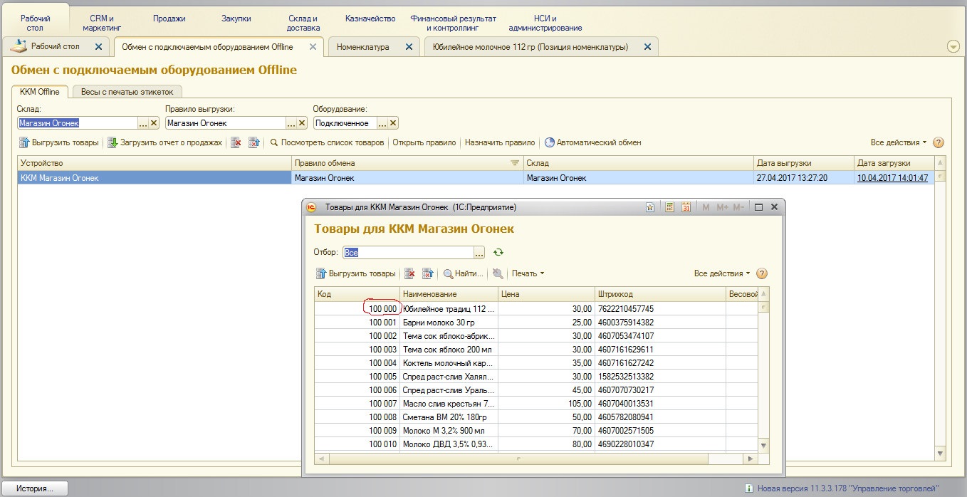 Требуется доработка УТ 11.2 (11.2.3.290) платформа 8.3 (8.3.8.2197) При выгрузке в ккм оффлайн прога создает свой код а надо чтоб код выгружался как забит в номенклатуре. Выгружаем в ккм Штрих лайтпос.