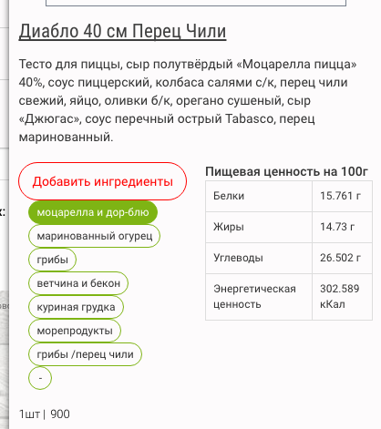 Примерно такая реализация сейчас. Нужно чтобы можно было добавить и отменить ингредиенты.