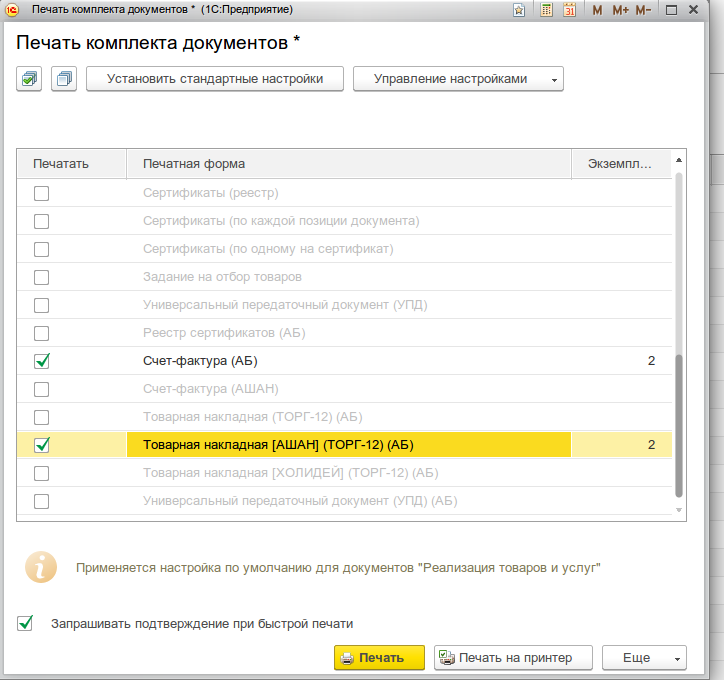 Не можем разобраться. Не работает стандартная функция печати с настройкой. Выдает вообще левую печатную форму, если настроено для внешних печатных форм.