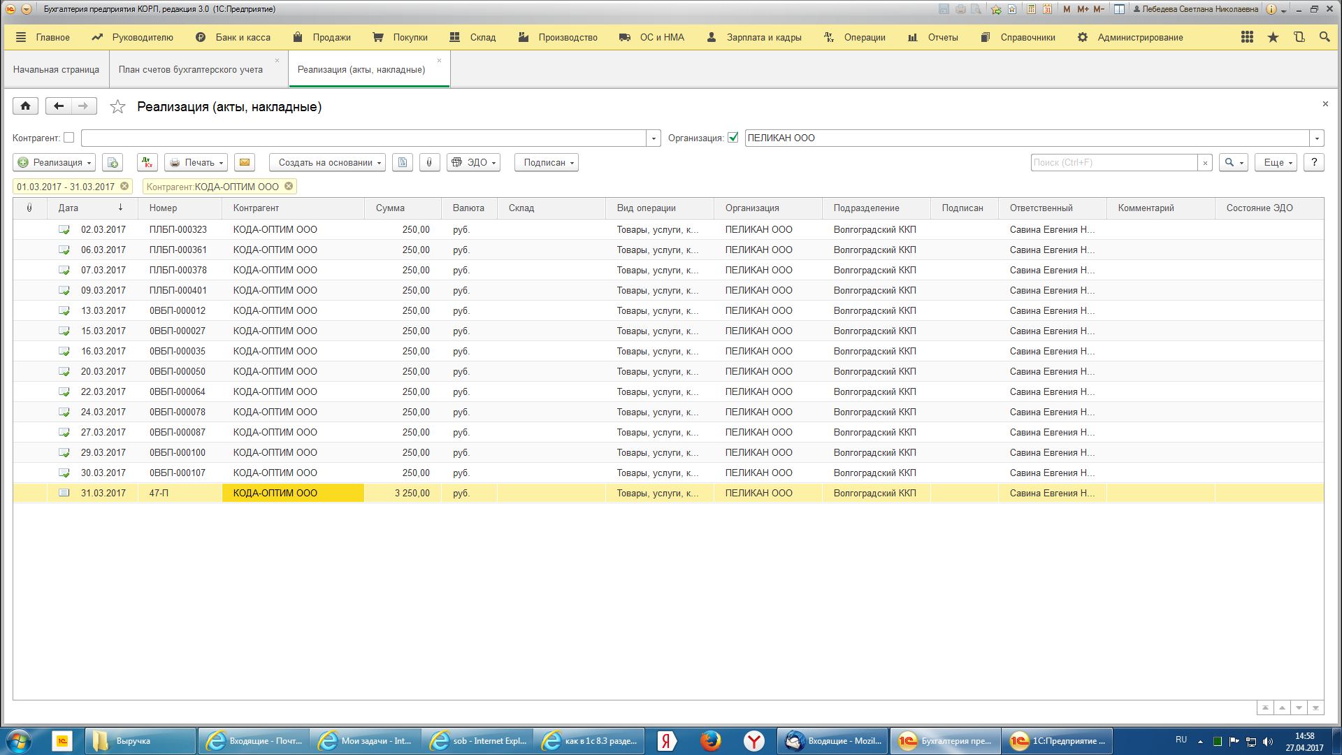 в результате по акту сверки видим на любой момент состояние наших взаиморасчетов.