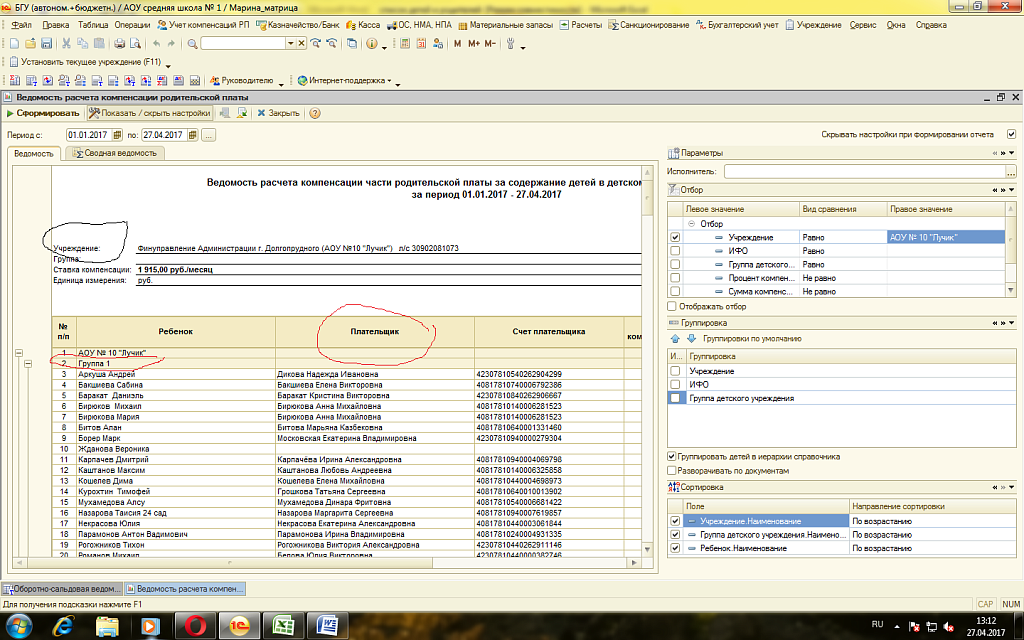 Нужна ведомость с данными по детям и плательщикам с паспортными данными.