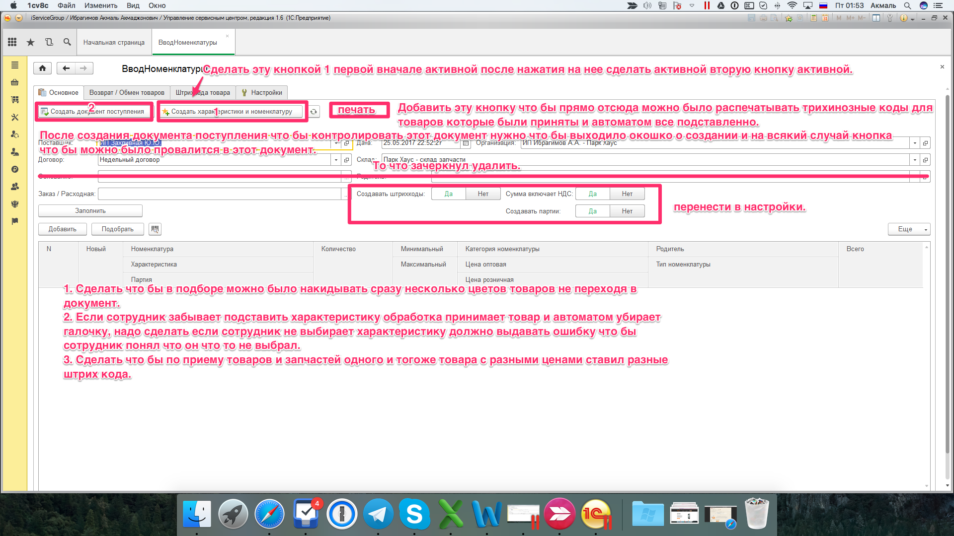Нужно доработать обработку по приму товара в скрине все написано что надо сделать.