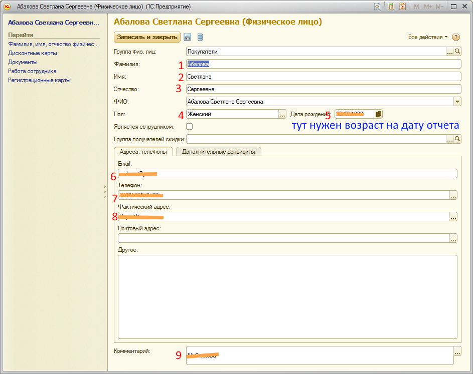 Создать отчет о контактных данных клиентов