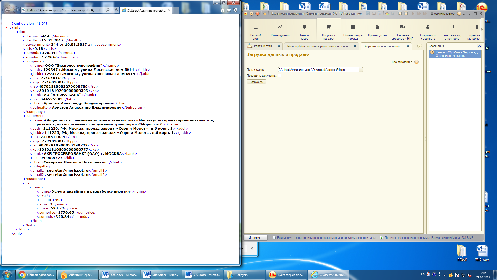 Исправить ошибки при загрузке файла XML в 1С