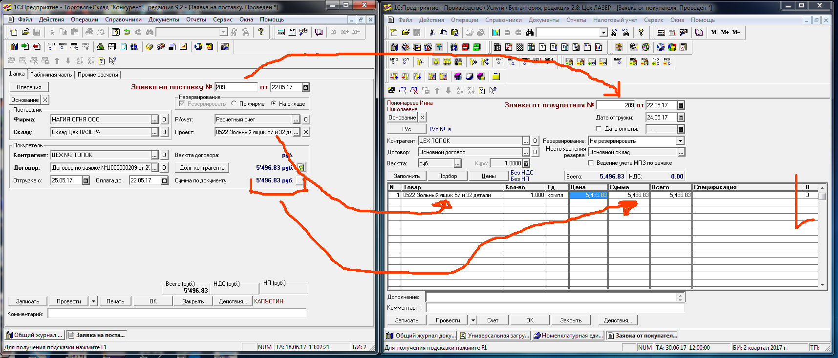 2) В документе "Заявка от покупателя" в ТЧ вставляем нашу номенклатуру (проект) количество: 1; единица: комплект; сумма =сумма документа из Тис
