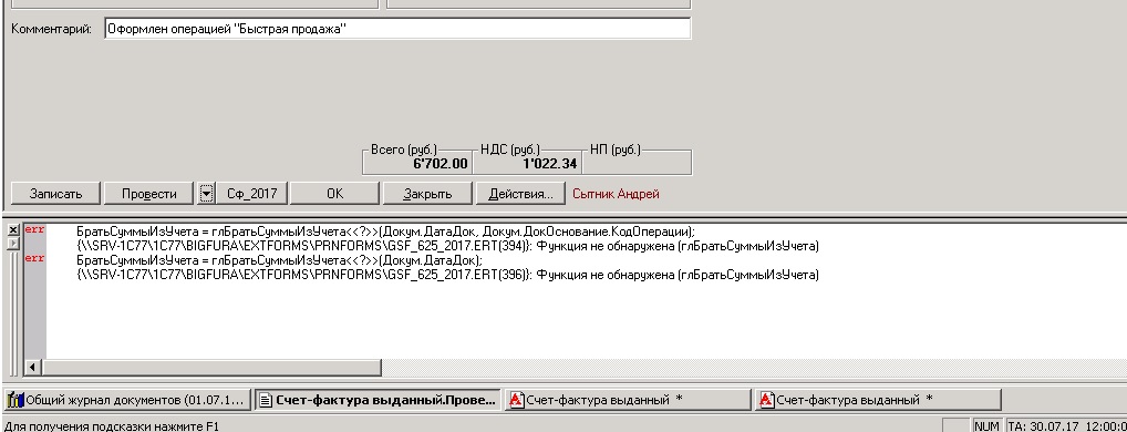 Печатная форма Сч.фактуры 2017 г. 1С 7.7 ред 4,5