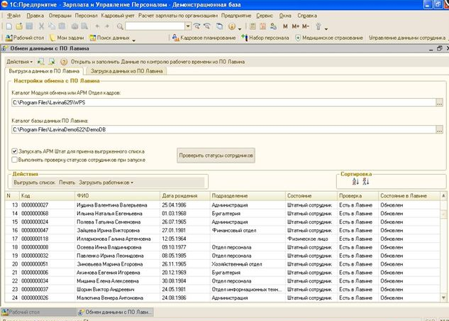 Обработка для взаимодействия ПО Лавина и 1с ЗУП 3.1.3
