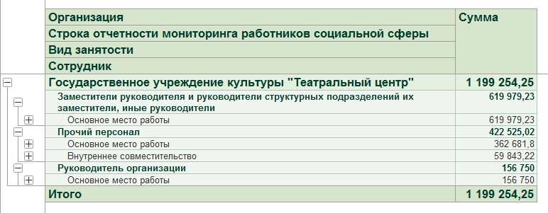 Требуется доработка готового внешнего отчета "Начисления по категориям и видам занятости" с отнесением начислений сотрудника по внутреннему совместительству к категории должности по основному месту работы. Пример отчета без доработки во вложении