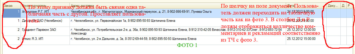 Создан документ ЗаявкаПеревозчику. Требуется в этом документе связать 2 табличные части, чтобы можно было связывать грузополучателя и грузоотправителя (скорее всего через КлючСтроки, как это сделано в документе ОтчетКомиссионераОПродажах, связь 2ух табличных частей ПокупателиТовары и Товары). И нужно создать ТЧ на которую можно переходить по клику на поле + отражение в этом поле номеров документов, а в 2ух соседних столбцах рекламации и коментарий. ТЧ на ФОТО 3.