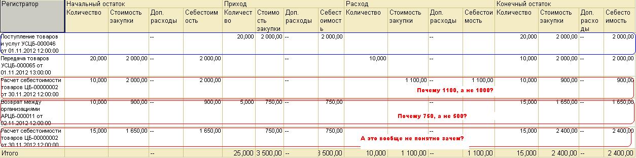 Дак вот расчет себестоимости не корректен, нужно узнать почему? возможно что то не правильно настроено.