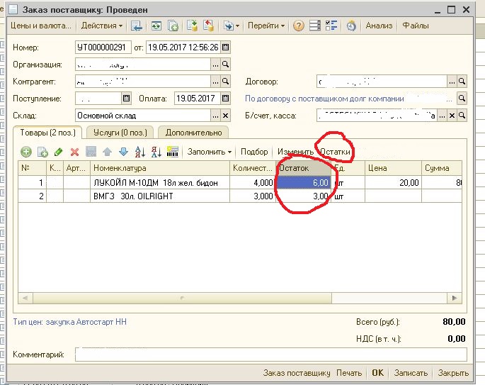 Что бы в Заказе поставщику отображалась дополнительная колонка " Остатки " рядом с количеством заказанного товара.