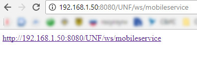 1. Апач работает. Через Конфигуратор с правами Админа сделана веб-публикация MobileService. Через браузер до ссылки достучаться могу (в моем случае http://192.168.1.50:8080/UNF/ws/mobileservice), аутентификацию по логину и паролю запрашивает. После фаил можно открыть, данные в нем есть.