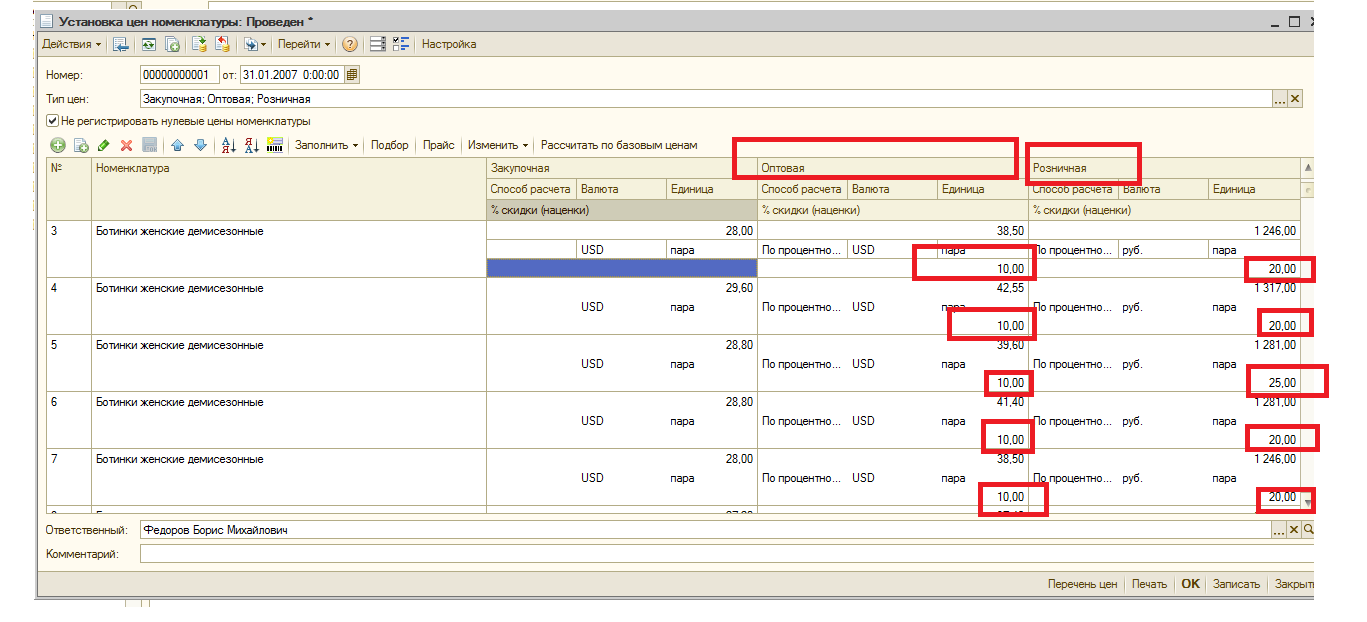 Требуется добавить 3-5 реквизита (типы цен) в группу номенклатуры, и проставить наценку. В документе установка цен номенклатуры, будет работать механизм расчета цен в зависимости, от той наценки (показателя) который вписан в номенклатурную группу.