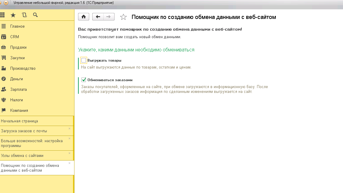 Нужен модуль, обеспечивающий ОДНОСТОРОННЮЮ передачу данных, полученных с вебформы интернет страницы в 1С посредством встроенного в 1С стандартного "Узла обмена с сайтом".