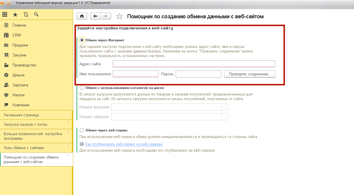 в прикрепленных файлах - пример веб формы и скрипта ее обработки и скриншоты страндартного модуля 1С по обмену с сайтом.