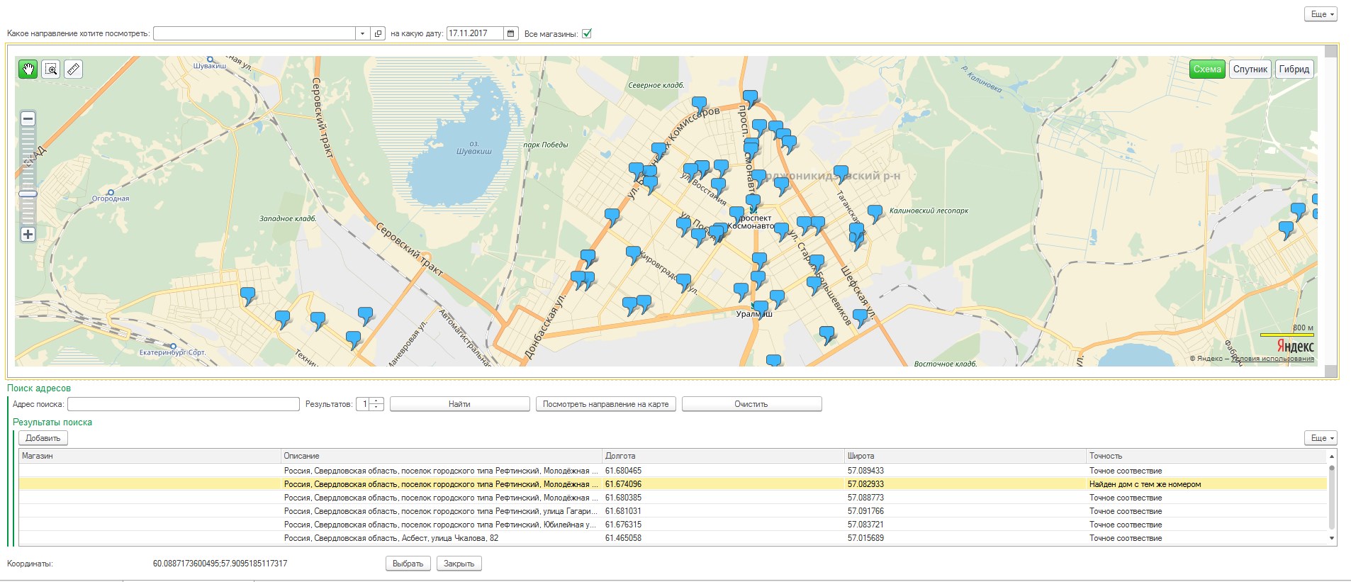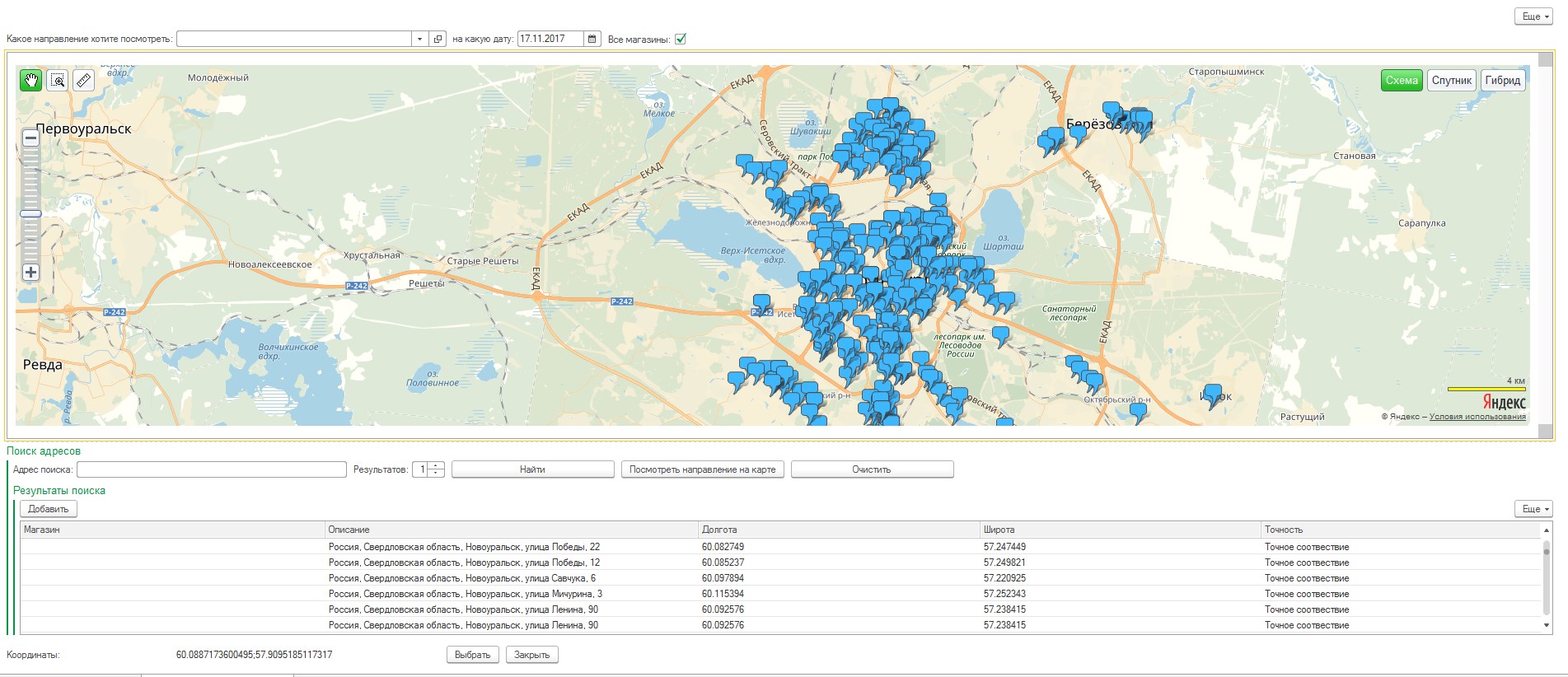 Имеется некая обработка, которая выводит на карту точки обозначающие магазины отгрузки. Необходимо доработать или предложить другой вариант решения следующих задач: