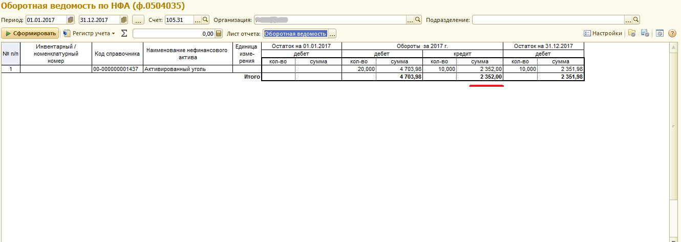 В итоге когда сформировываю оборотку по НФА не сходится сумма по кредиту и дебету, она равна 2352,00, а поступление 2351,98 (скрин_3)