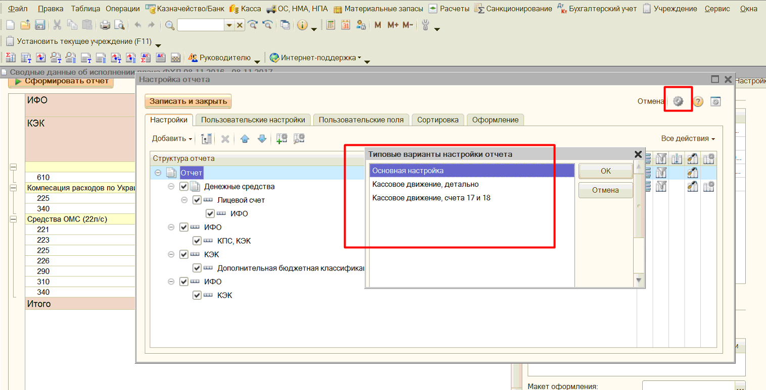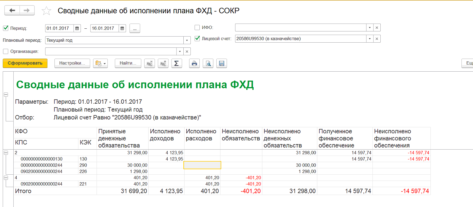 Как настроить отчет "Сводные данные об исполнение плана ФХД"