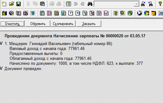 При проведении документа "Начисление зарплаты" не верно считает сумму НДФЛ и следовательно сумму к выплате. ПРилагаю скрин проблемы. Базу могу выслать. Скорее всего где-то раньше допустили ошибку, необходимо найти проблему и пояснить как ее исправить