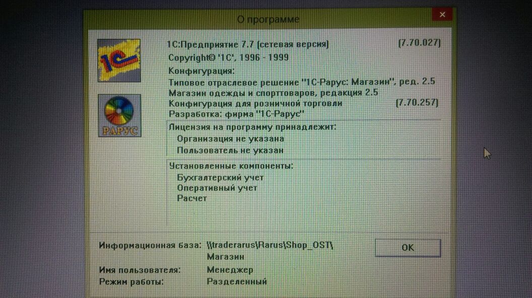 - V7.7 1С-Рарус: Магазин одежды и спорттоваров