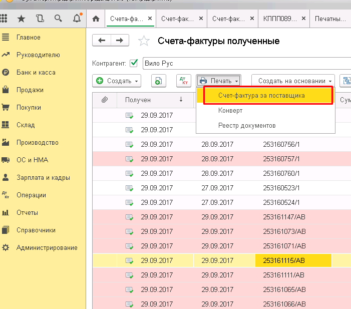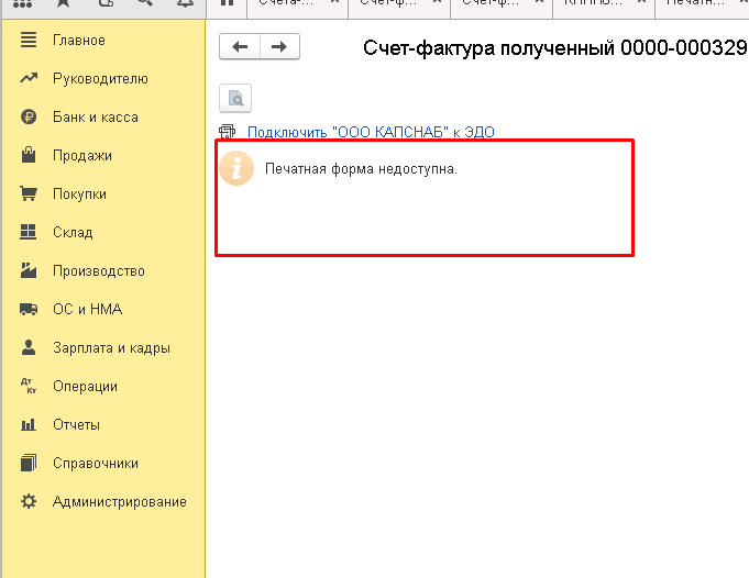 Не печатается счет фактура за поставщика из документа счет фактура полученный на аванс