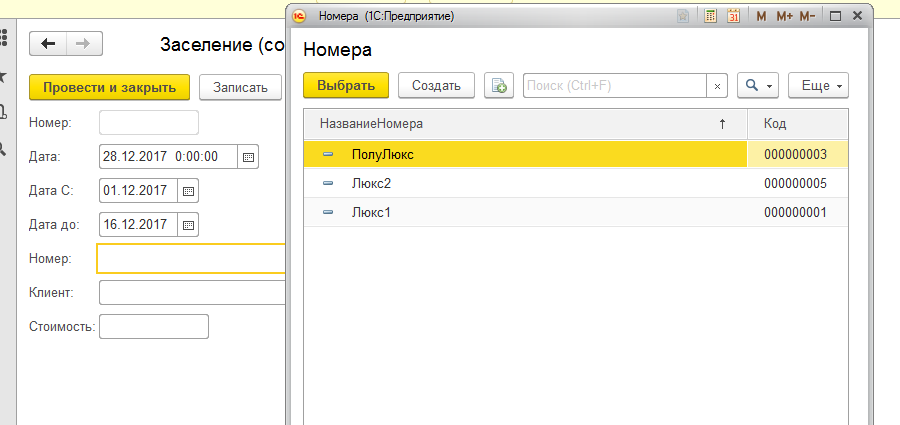 Что нужно : нужно чтоб в документе заселения при выборе номера для проживания указывались только свободные и забронированные номера в выбранные даты. (т.е. чтоб указанные даты не попадали между датами из регистра).