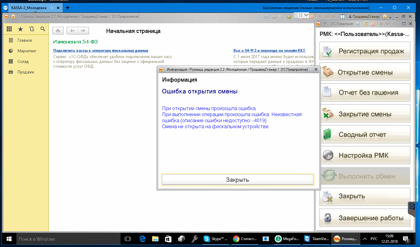Сначала выдал Z-отчет по нулям - хотя продажи были, а потом вообще перестал смены открывать. Тест устройство проходит успешно. Фискальник фирмы АТОЛ с интернет связкой с налоговой.