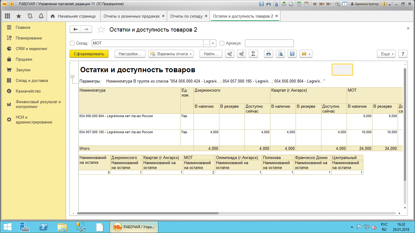 Необходимо сделать внешний отчет на основе отчета «Остатки и доступность товаров».