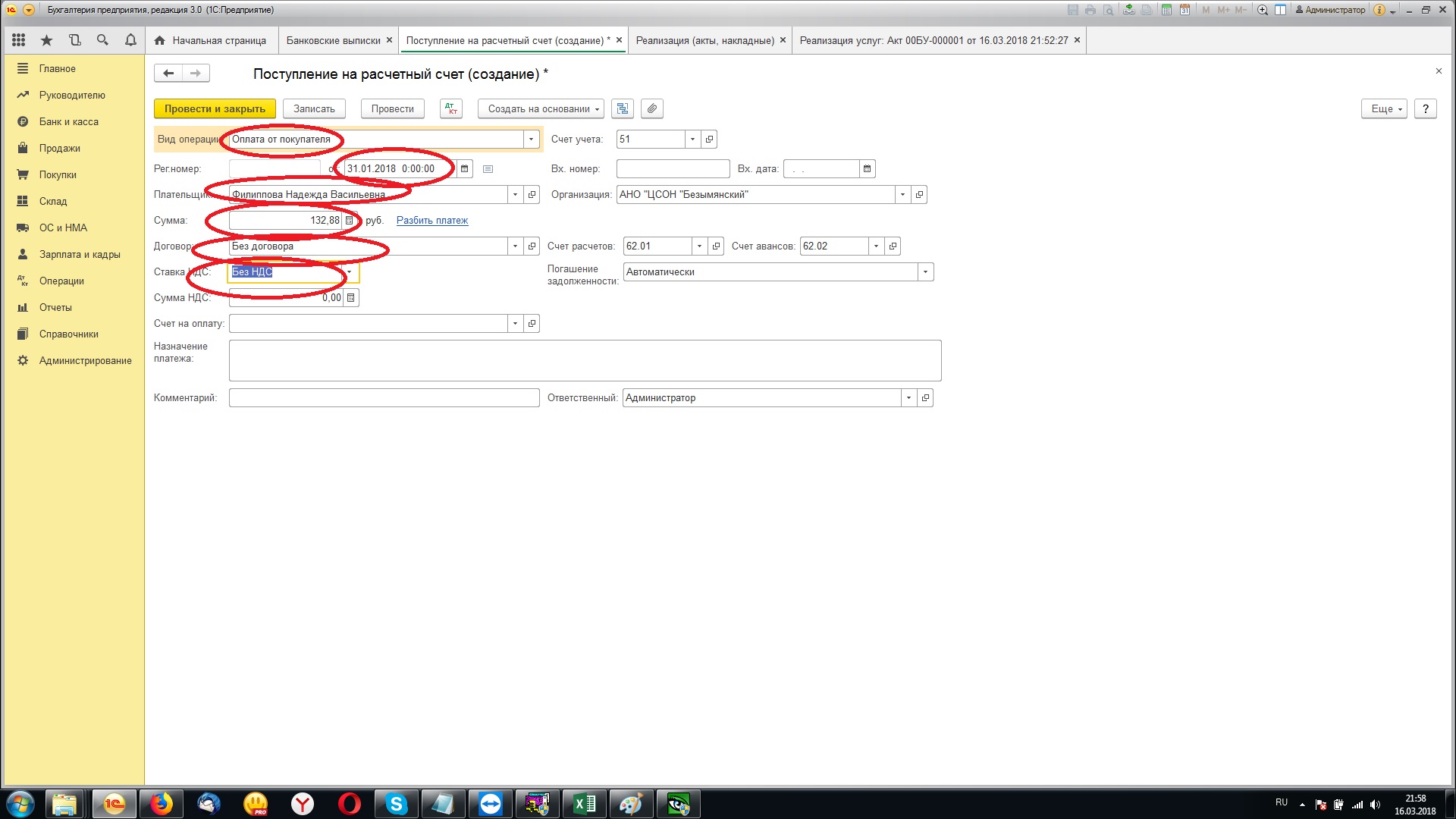 1. Из txt загружаем документы «Поступление на расчетный счет».