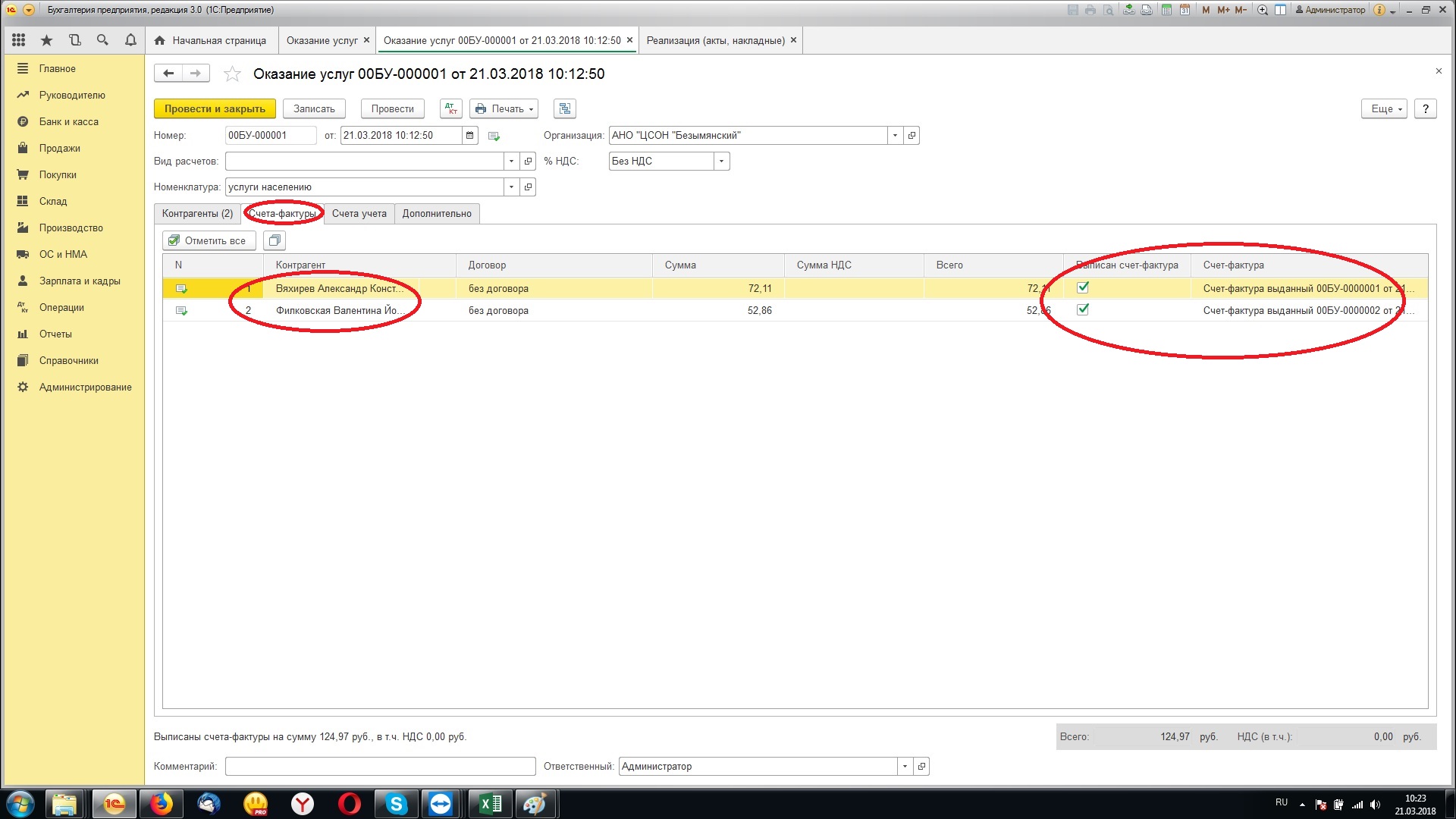 2. Из Xls будем грузить в документы «Оказание услуг»