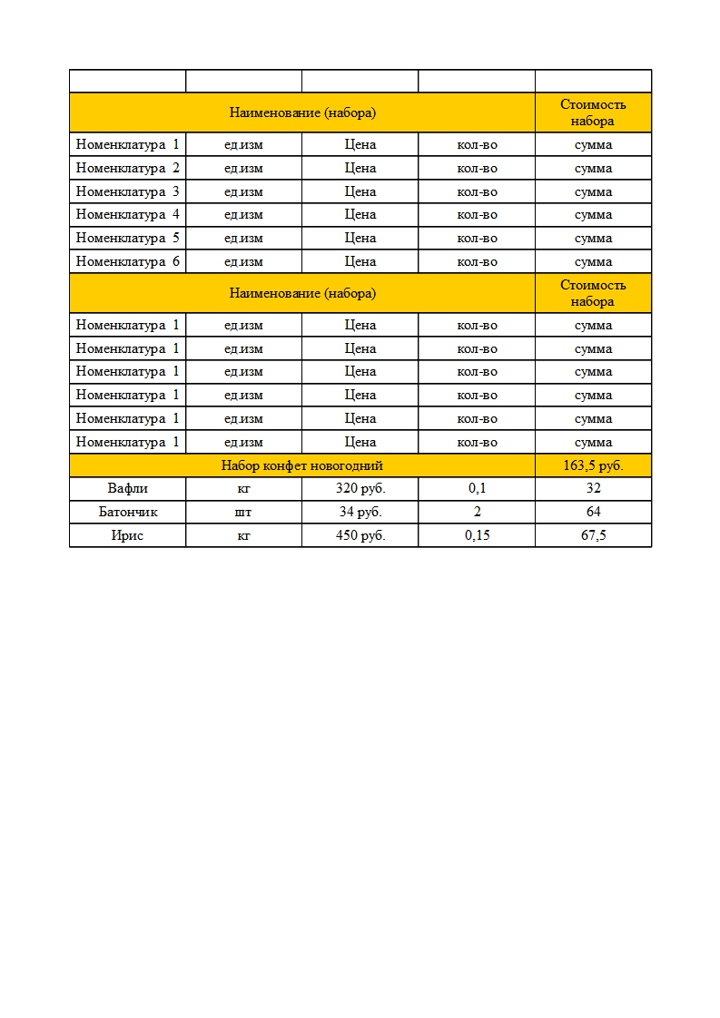 Для 1С Комплексная автоматизация используя СКД необходимо создать внешний отчет: Калькуляция стоимости Набора(тип номенклатуры) с отбором по типу цены. Пример во вложении.
