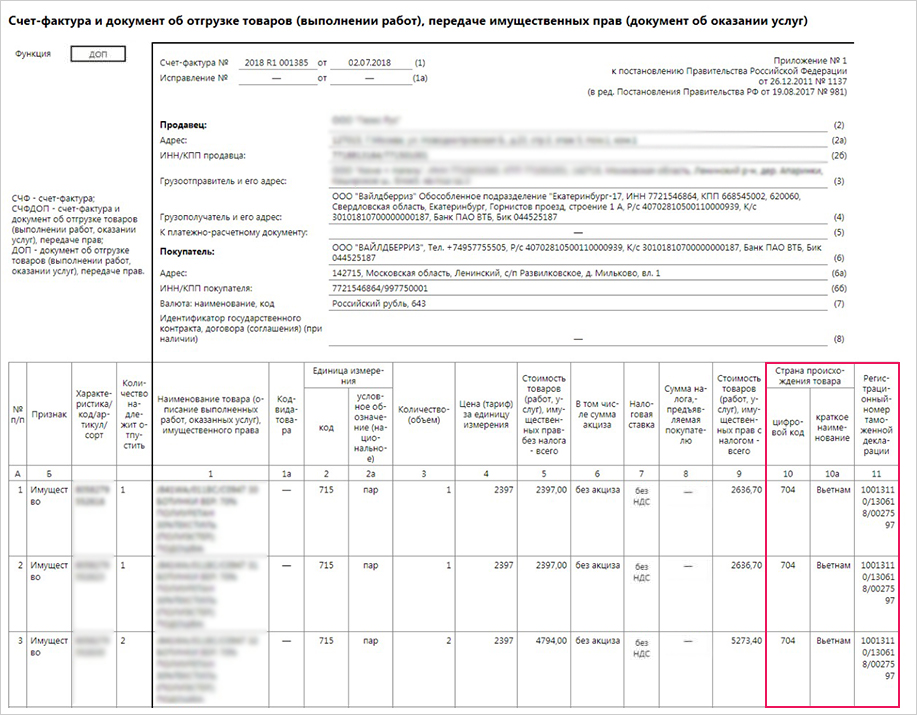 Надо сделать в программе сделать ПФ УПД в том числе с 3мя колонками (страна происх, цифровые код страны и гтд)