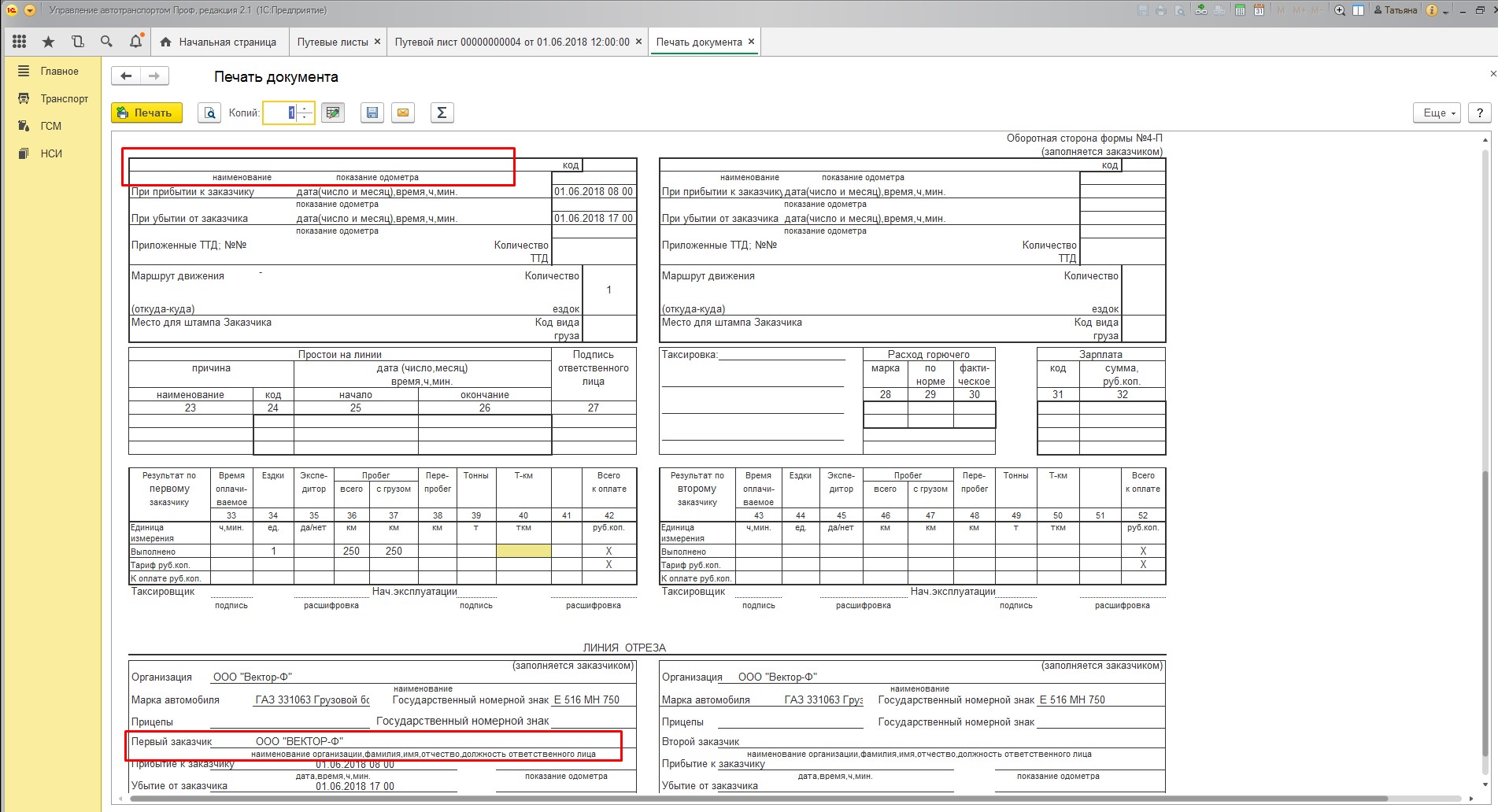 На оборотной стороне сверху Заказчик не заполнен а внизу заполнен