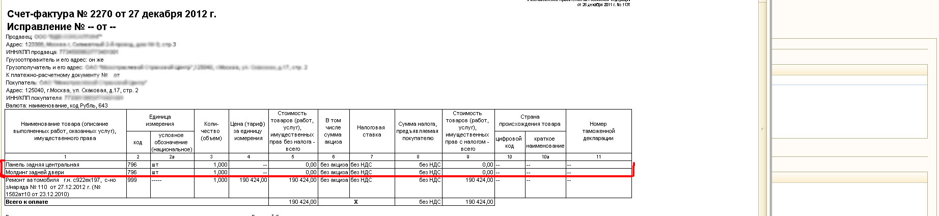 Переделать счет-фактуру 1137