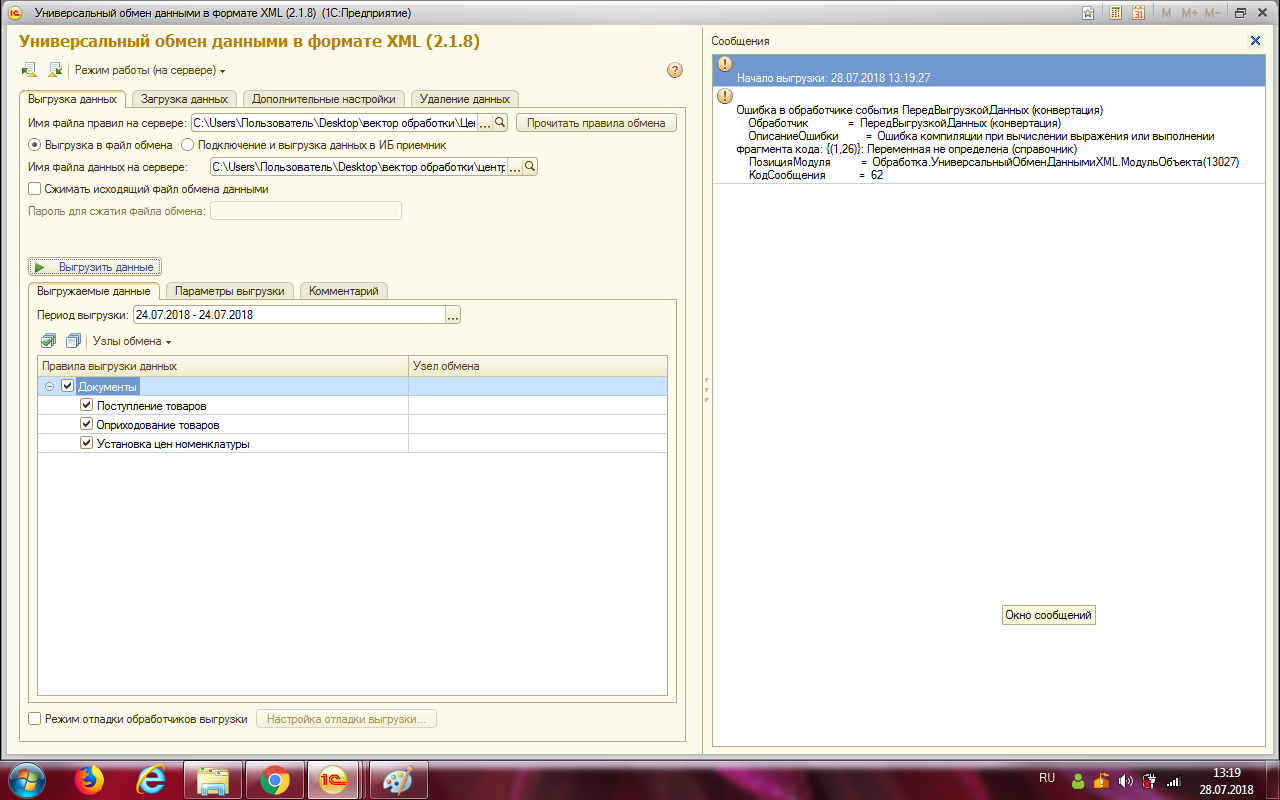 Доработать правила выгрузки-загрузки из Розницы в Розницу