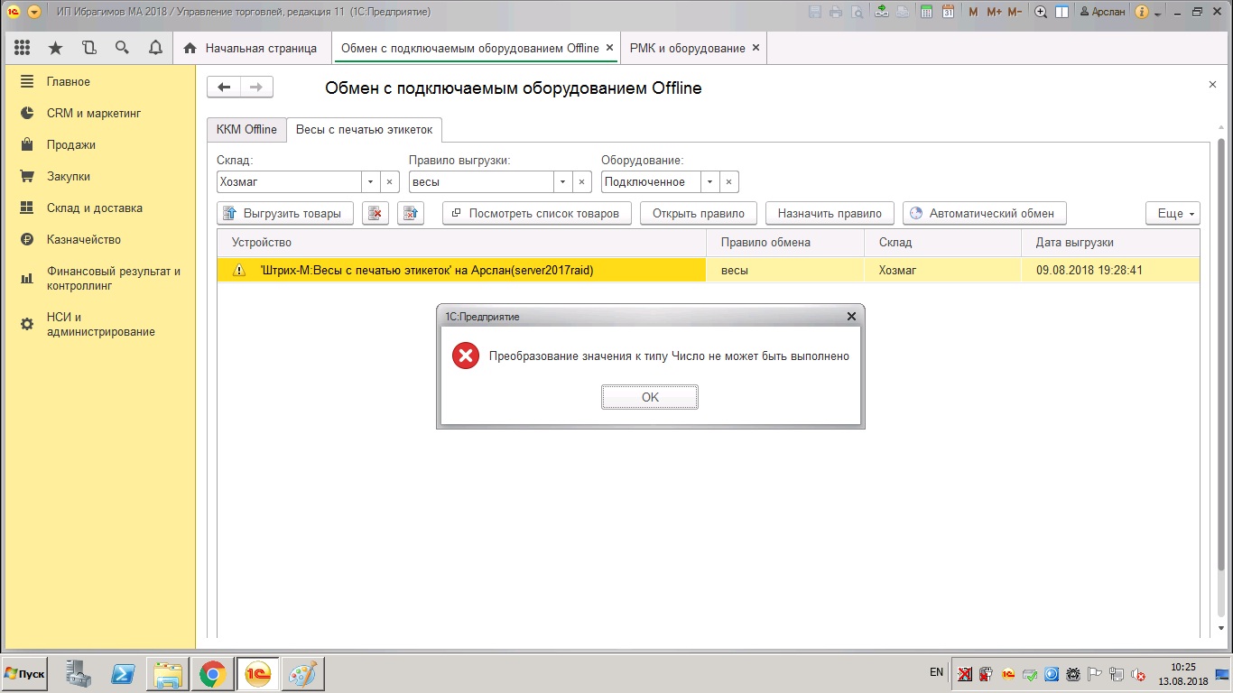 Ошибка при выгрузке товаров в весы с печатью штрих кодов