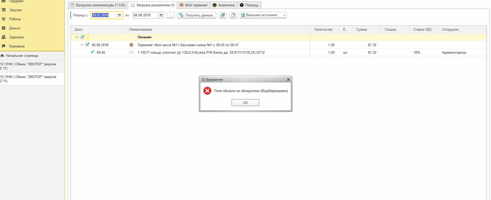 Требуется устранить ошибки в обработке по загрузке данных из Эвотор в 1С Автосервис 1.6.2.15 ( на базе 1С УНФ 1.6). Выгрузка работает, загрузка - выдает ошибку. Скрин ошибки и обработку приложил.