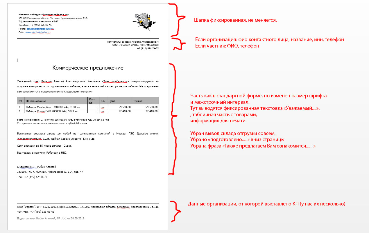 Доработать форму коммерческого предложения УТ 11.4