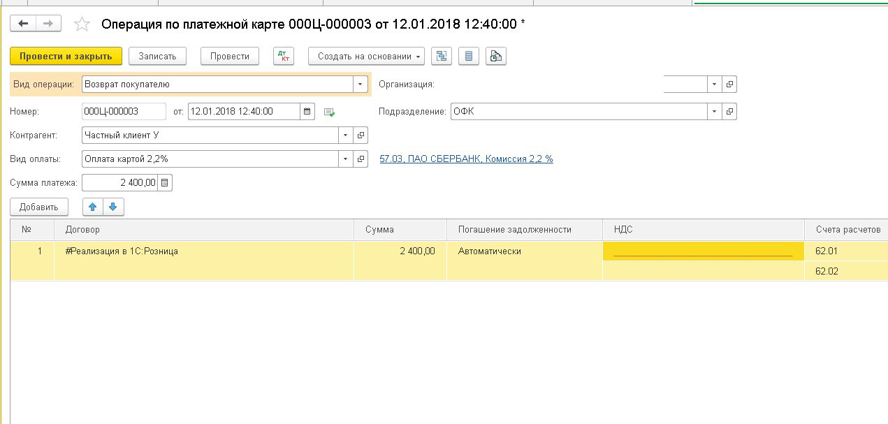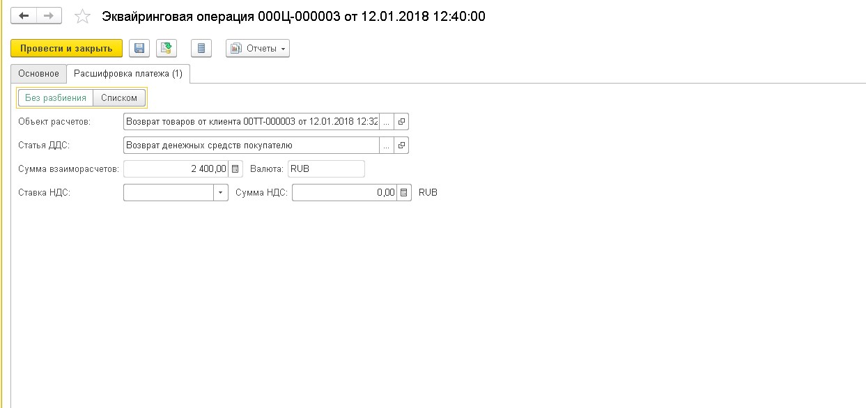 в УТ в эквайринговой операции возврат покупателя стоит документ возврата, в БП он не приходит