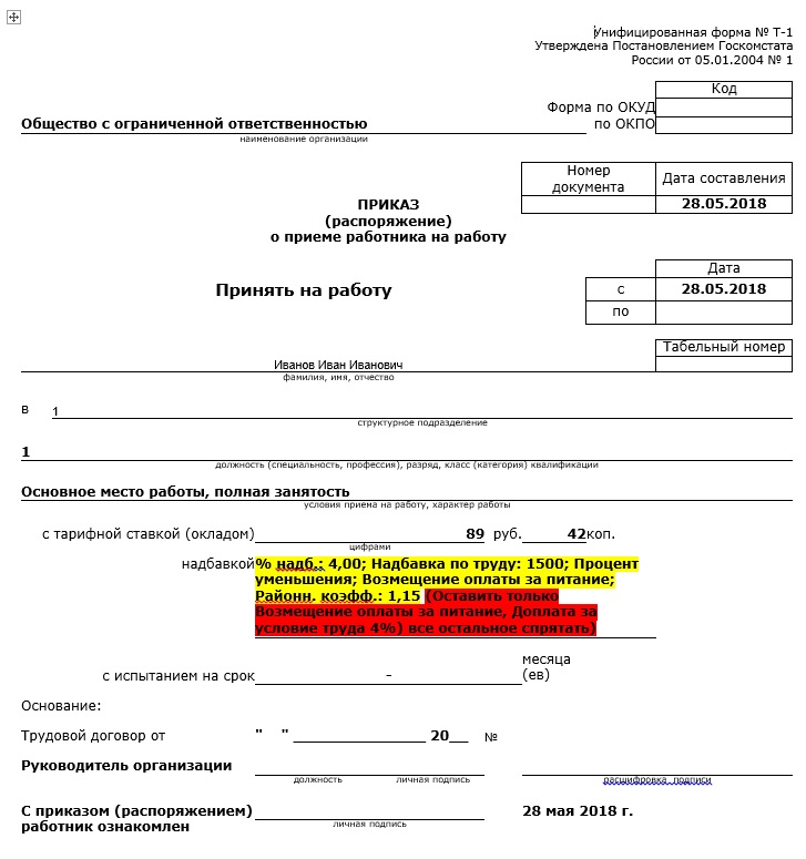 требуется доработка внешней печатной формы приказ о приеме на работу для 1с управление производственным предприятием версия 2.0, графа Надбавки, подробности в файле