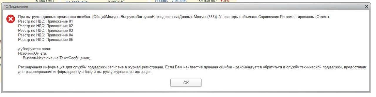 При попытке выгрузить базу бух 3.0 в сервис ошибка