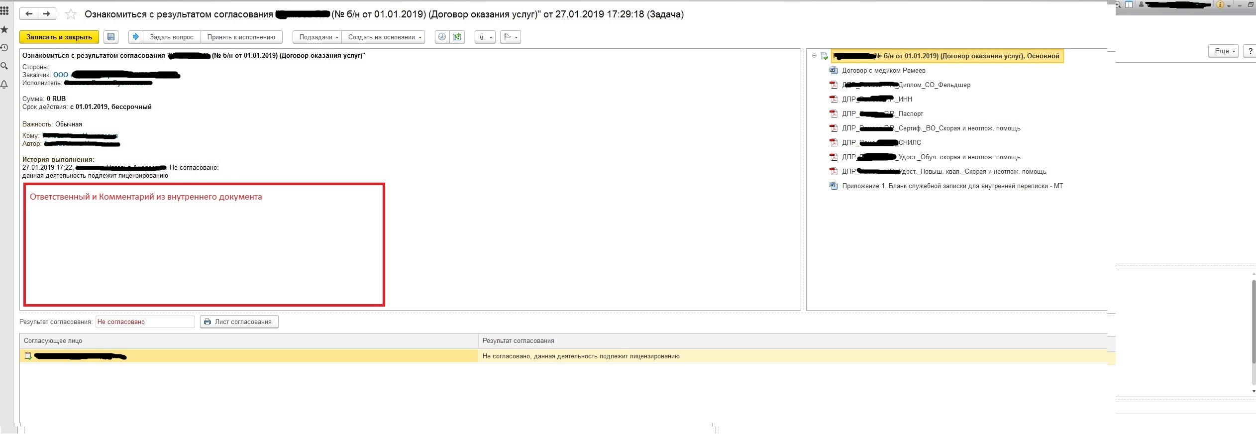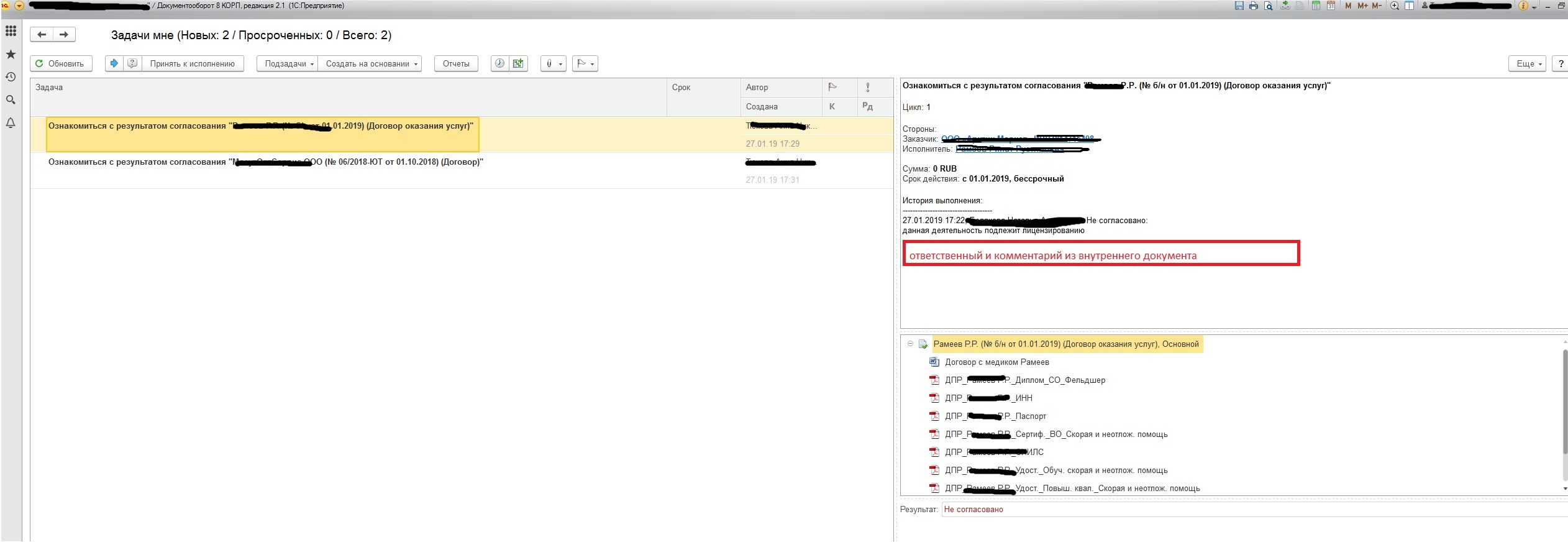 В форме Мои задачи и в форме списка задач нужно добавить из Документа который установлен на согласование в этой задаче, реквизиты Комментарий и реквизит Ответственный.