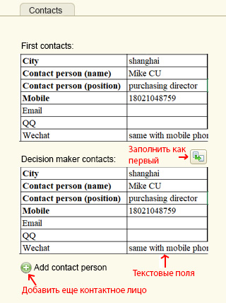Добавить вкладку Контакты согласно приложения.
