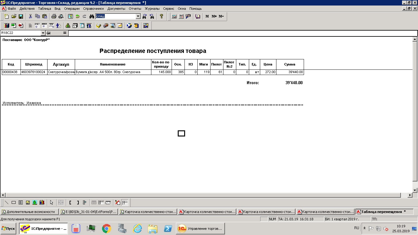Добрый день, нужна таблица распределение поступления товара на складах.(внешняя форма)